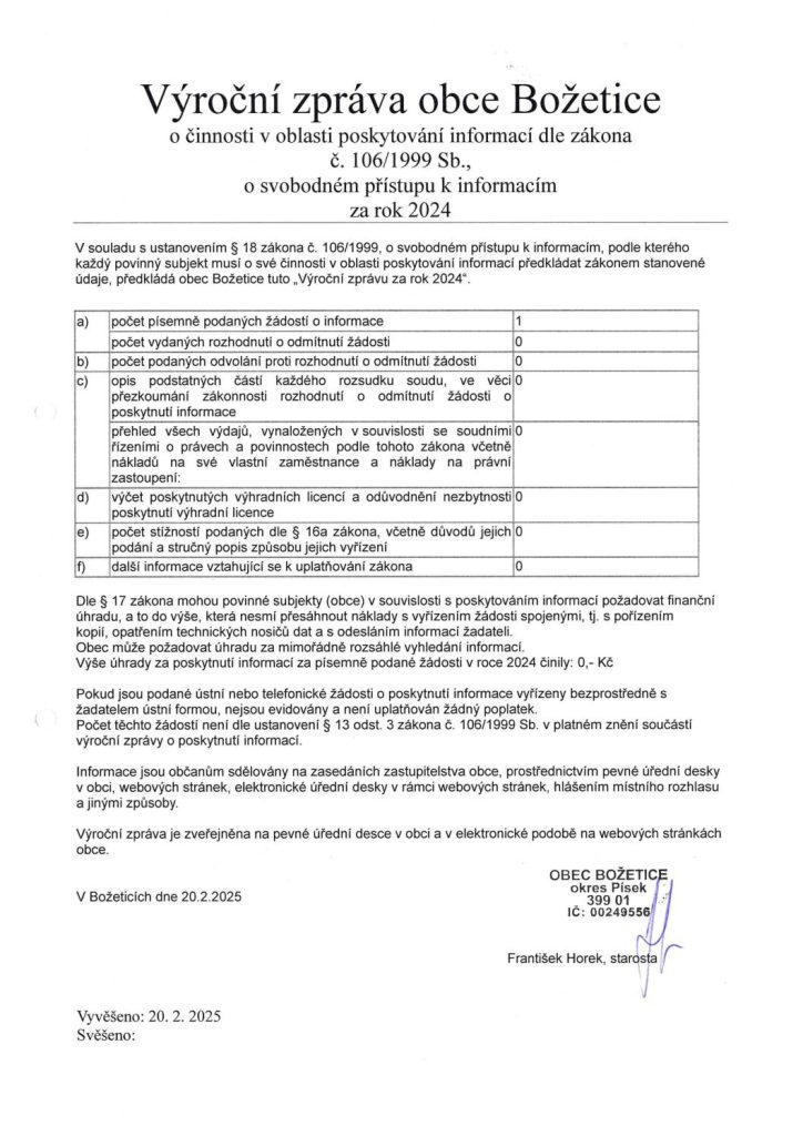Výroční zpráva k poskytování informací k zákonu č. 106/1999 Sb.
