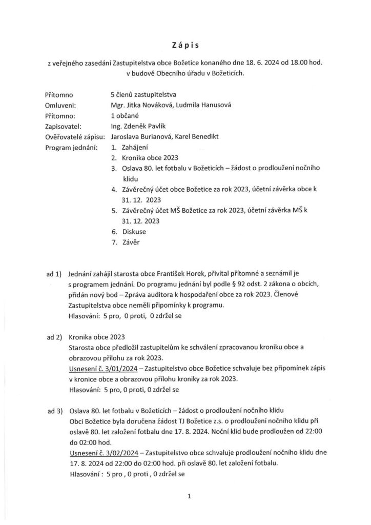 Zápis ze ZO ze dne 18. 6. 2024